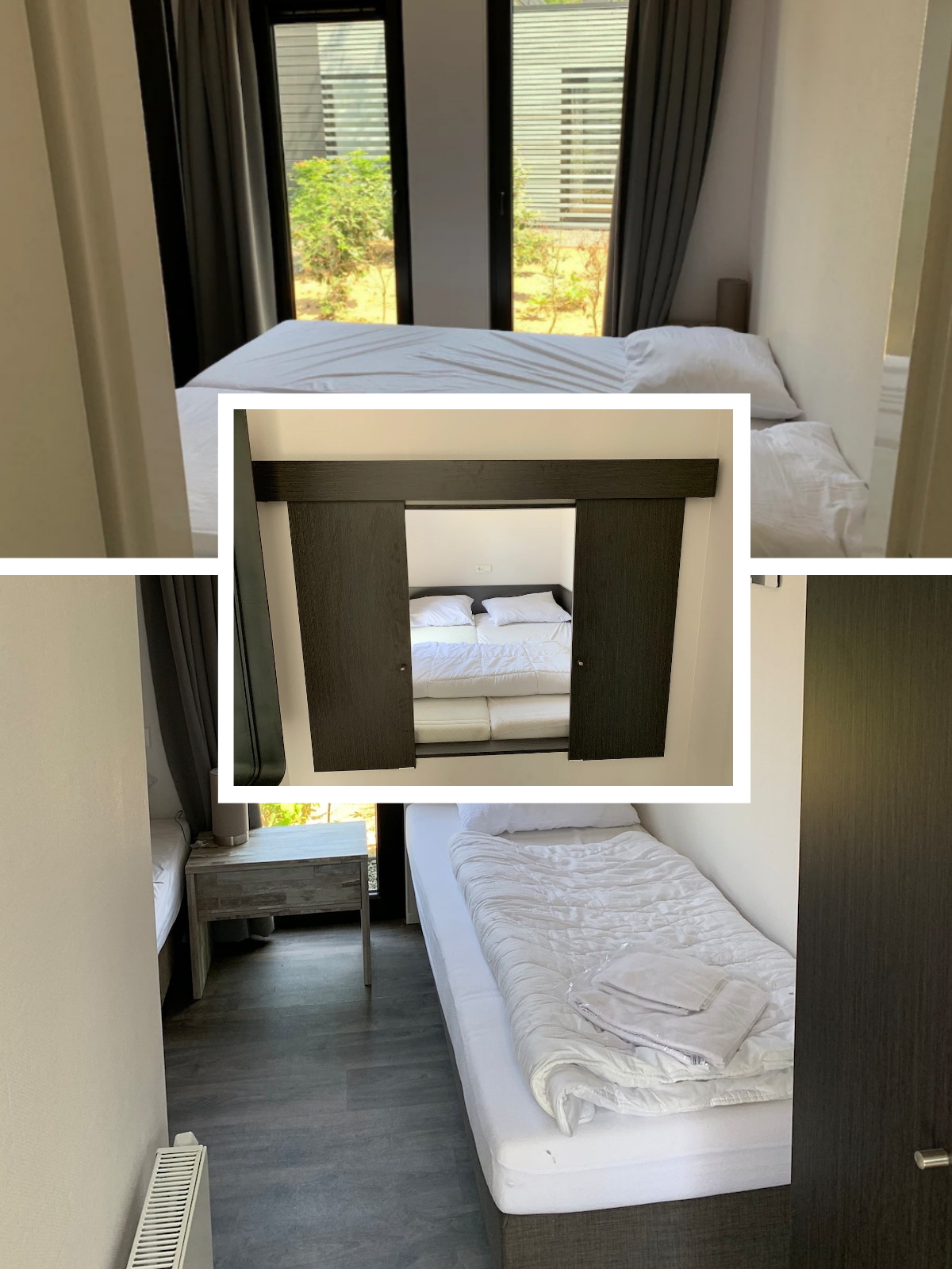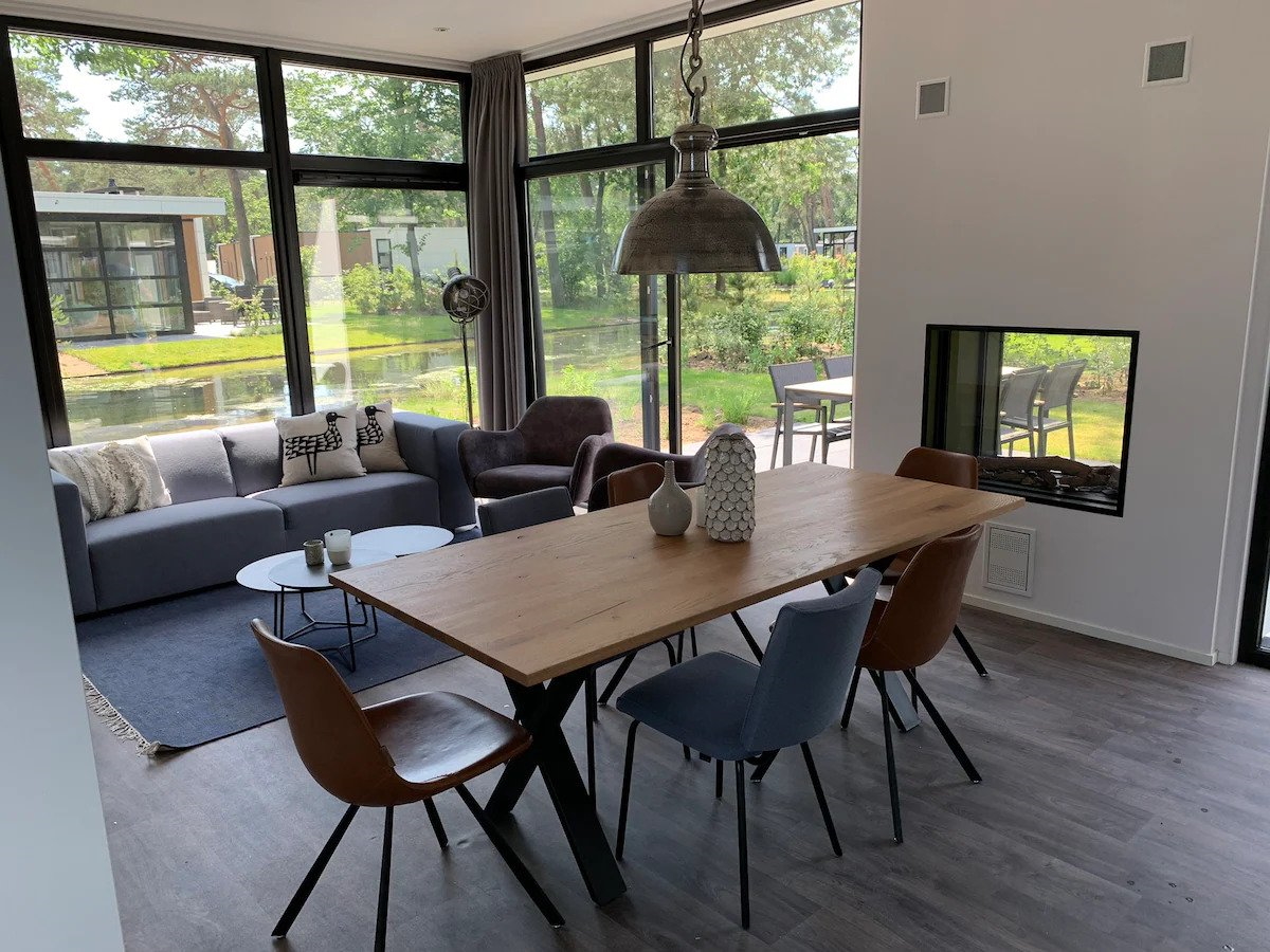 De 6 persoons woning heeft een moderne uitstraling met een aangenaam en huiselijk gevoel. Het hoge plafond en de mooie lichtinval geven een prettig ogend ruimtelijk gevoel aan de royale woonkamer met sfeerhaard. De schuifpui leent toegang tot het zonneterras waarop je heerlijk kunt genieten.