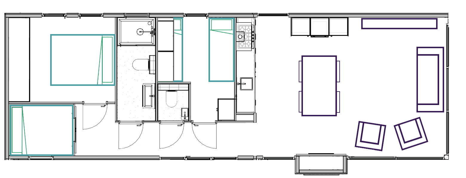 De 6 persoons woning heeft een moderne uitstraling met een aangenaam en huiselijk gevoel. Het hoge plafond en de mooie lichtinval geven een prettig ogend ruimtelijk gevoel aan de royale woonkamer met sfeerhaard. De schuifpui leent toegang tot het zonneterras waarop je heerlijk kunt genieten.